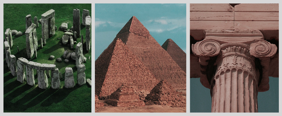 Με τη γέννηση των πρώτων πόλεων στον ιστορικό ορίζοντα, έξι χιλιάδες χρόνια περίπου πριν στη Μεσοποταμία, στην Αίγυπτο, στην Κρήτη, στην Ινδία, αχνοφαίνεται η διάκριση από τον ερεβώδη φυσικό κόσμο όπως εκφραζόταν στις προγενέστερες αντιλήψεις σε σπήλαια και λαβυρίνθους. Βαθύτερες ρίζες του κοινωνικού μετασχηματισμού θα μπορούσαν να αναζητηθούν σε κλιματικές αλλαγές οι οποίες επέτρεψαν την εγκατάσταση ανθρώπινων ομάδων σε μόνιμους οικισμούς δημιουργώντας «πληθυσμιακή και πολιτισμική έκρηξη», και αυτό μας ενδιαφέρει για να αντιληφθούμε πως και τα φυσικά φαινόμενα στον χώρο μεταστρέφουν ιδέες και κοινωνικές ανάγκες. Η εύρυθμη διαχείριση πάντως μόνιμων οικισμών ρυθμίζεται από το ηλιακό φως για τούτο, ίσως και μεγαλιθικές κατασκευές όπως τα Μενίρ και τα Κρόμλεχ είναι χώροι λατρείας του Ηλίου με φαλλικές συνδηλώσεις για το πρώτο ως προς τη διάρκεια, τη δύναμη, και γονιμοποιητικές για το δεύτερο μιας και οι μονολιθικοί στύλοι διατάσσονταν κυκλικά. Πρόκειται για κατασκευές που άντεξαν στο πέρασμα των αιώνων και εξαπλώθηκαν από τη Β. Ευρώπη ως και την Κορέα. Βέβαια, αναφερόμενοι στη συσχέτιση μνημείων με τα ουράνια φαινόμενα και την όποια προβολή τους στην κοινωνική ιεραρχία δεν θα παραλείψουμε τις πυραμίδες της Αιγύπτου. Βρισκόμαστε ενεοί στις πρώτες εξάρσεις του πνεύματος όπως αποδόθηκαν σε ανθρώπινες κατασκευές μετά την θηρευτική και τροφοσυλλεκτική περίοδο, όμως, αν και αναφερόμαστε μεταξύ άλλων σε μνημεία που σχετίζονται με τον Ήλιο και τα ουράνια σώματα, ο ζόφος δεν εκλείπει για τους περισσότερους. Δε θα μας απασχολήσει για τις ανάγκες του δοκιμίου η άρτια κατασκευή των πυραμίδων, αλλά το πώς κατοπτρίζεται μέσα από τα θαυμαστά αυτά κτίσματα η δομή της αρχαίας κοινωνίας και οικονομίας. Η άφθονη προσφορά δούλων καθιστά τεχνολογικούς μηχανισμούς αντιοικονομικούς, που ακόμη και οι πιο σύγχρονοι όπως παρατηρεί ο Αλ. Κοϋρέ, δε θα μπορούσαν να σηκώσουν τους κυκλώπειους ογκόλιθους του Καρνάκ και της Ηλιούπολης. «Ο μάστορας σκέφτεται τον σκοπό που πρέπει να πετύχει κι όχι τα μέσα»(3). Η κύρια «μηχανή» της εποχής είναι ο «πειθήνιος» μυς. Η δουλεία επίσης, έχει ως συνεπακόλουθο την εδραίωση μιας ιεραρχίας αξιών που προκαλεί περιφρόνηση για τη χειρονακτική εργασία, αντίληψη που θα διατηρηθεί στον αρχαίο κόσμο εφόσον η θεωρησιακή ζωή όπως θα υποστηρίξουν αργότερα ο Αριστοτέλης και ο Πλωτίνος είναι ανώτερη από μορφές πρακτικής δραστηριότητας. Ακριβώς, αυτή η περιφρονητική στάση απέναντι σε διάφορες ειδικότητες τεχνιτών είναι μια από τις αιτίες που ακόμη και ως τον Μεσαίωνα δεν εντοπίζουμε μια τεχνολογική έκρηξη. Στην Αίγυπτο, ελλείψει φυσικών υλικών όπως το ξύλο, κατασκευές κτιρίων γινόντουσαν συχνά από πέτρα. Σε περιοχές όπως η Μεσοποταμία, τα κτήρια από πλίνθο είχαν ανάγκη μόνιμης συντήρησης και περιοδικής ανακατασκευής. Μια πόλη μπορούσε γρήγορα να ξεπηδήσει μα και να παρακμάσει από φυσικά αίτια, να βληθεί από πολέμους που διεξήγαν ανταγωνίστριες πόλεις. Οι αστικοί μύθοι της εποχής αναφέρονταν στην αδιάκοπη πάλη τάξης και χάους, με το χάος να υποβαθμίζεται από μορφοπλαστικό σε αρνητικό μέγεθος. Η αστική ζωή φαινόταν να φέρει φύσει τη βία, την εκμετάλλευση. Οι βίαιες αυτές συνθήκες ανησυχούν αρκετούς, όπως συγγραφείς της Βίβλου που τις μεταφέρουν συμβολικά στο πρόσωπο του Κάιν, τον πρώτο άνθρωπο που έκτισε πόλη, ως τον πρώτ